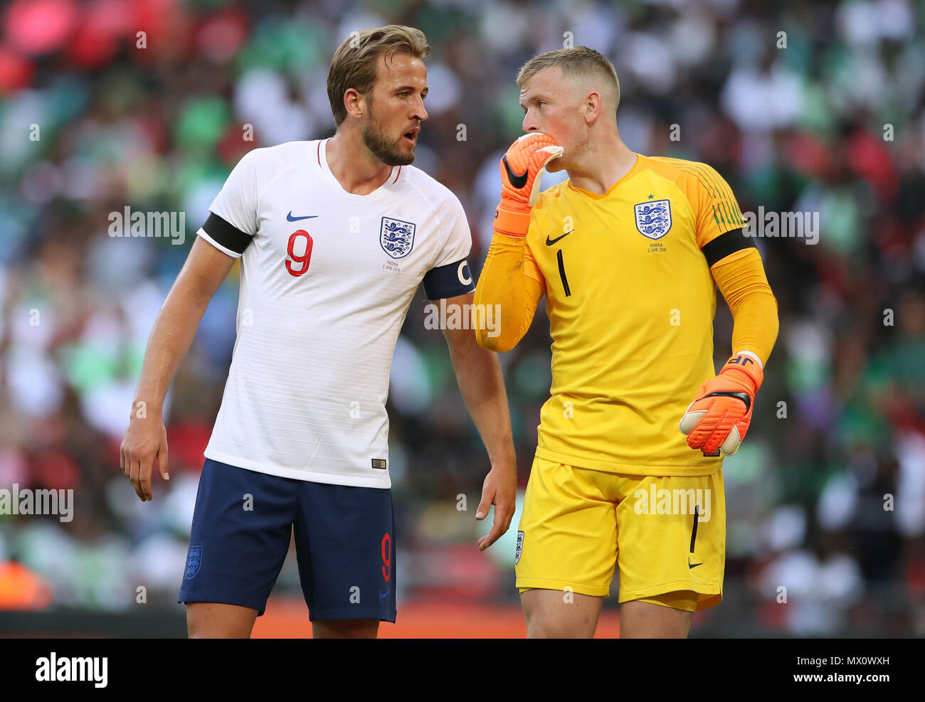 England Torhuter Jordan Pickford Rechts Und Harry Kane Wahrend Der Internationalen Freundschaftsspiel Im Wembley Stadion London Stockfotografie Alamy