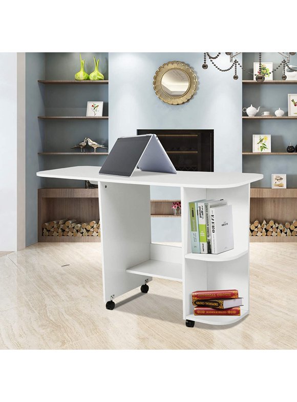 Homfa Folding Sewing Machine Table With Storage Shelves Rolling Cabinet With Lockable Casters Sturdy Multifunctional Wood Craft Station White Walmart Com